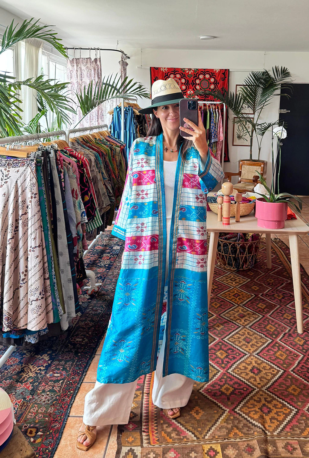Kimono de seda ikat, una prenda única, y especial con una caída espectacular. Súper ligero, chic y fresco.