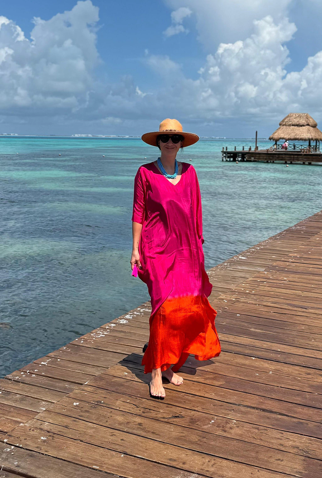 Kaftan de seda teñida a mano, en dos colores. Cuello en V. Unitalla.