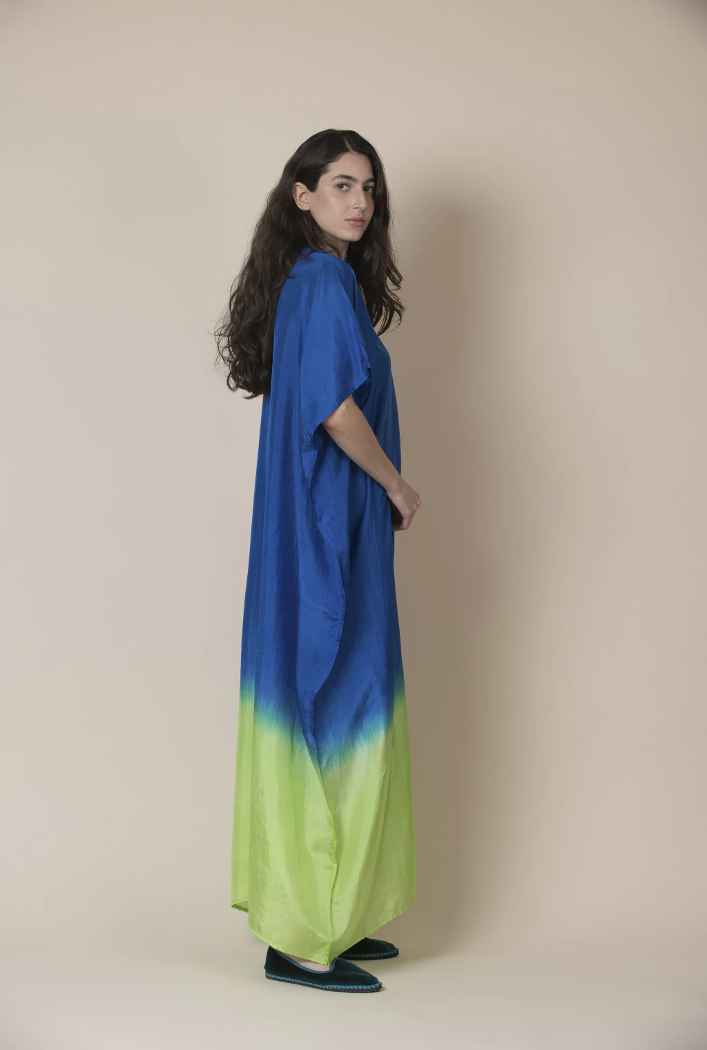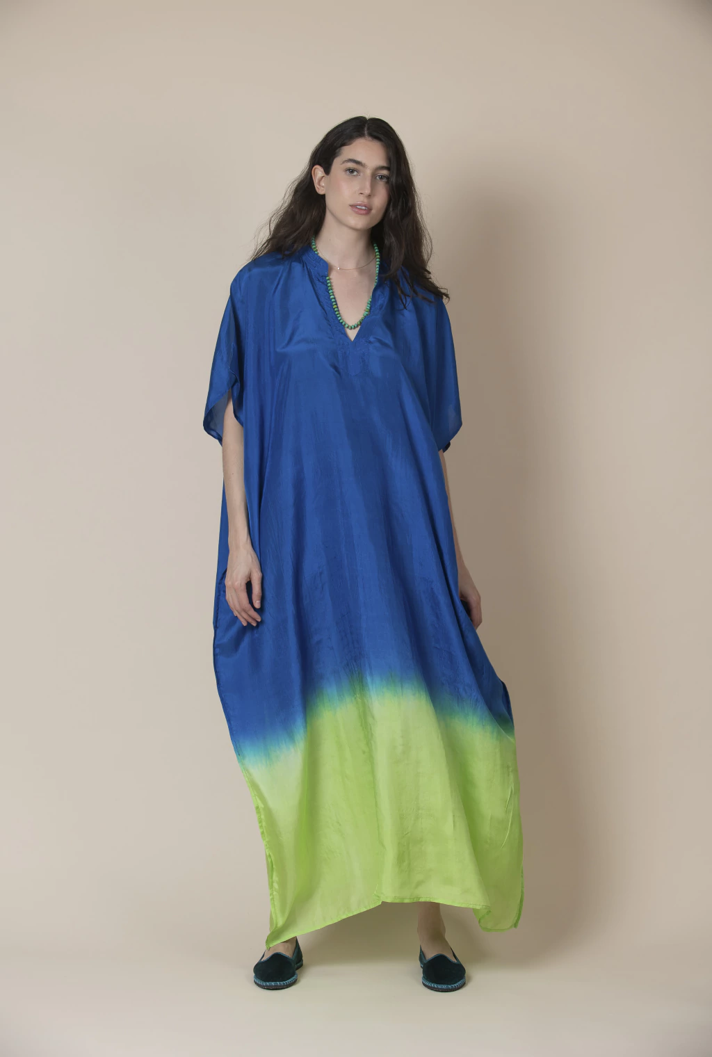 Tie Die Kaftan Seda Verde Esmeralda/Azul